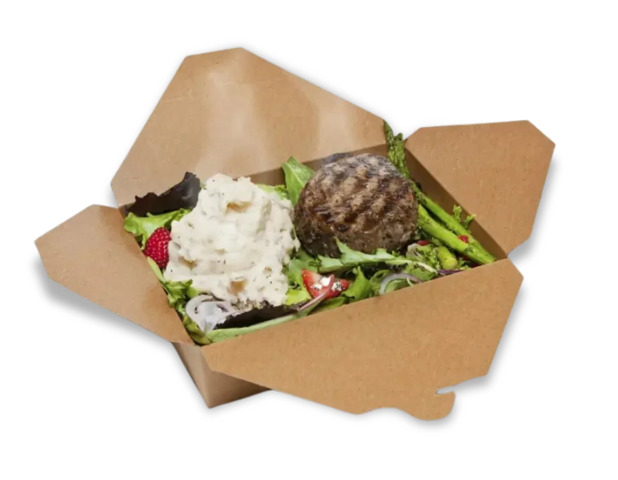 PackToGo introduces a versatile container system ideal for all your takeout needs, from light lunches to full meals and desserts. Available in four convenient sizes and two material options, these one-piece, leak-resistant containers are microwaveable, stackable, and can be custom printed to enhance your brand visibility.